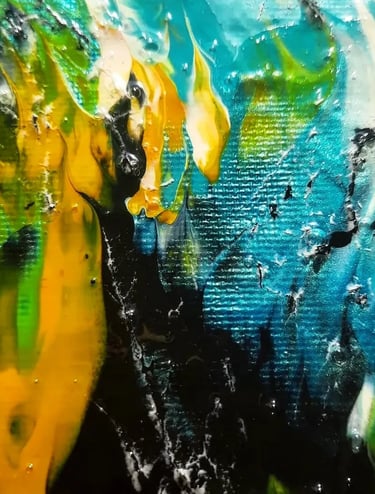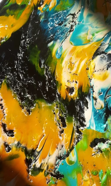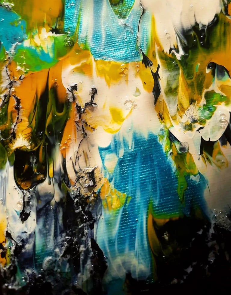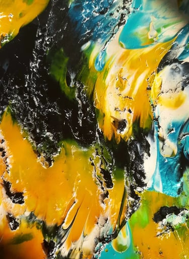 ▪︎ COLORIS : Jaune de Naples & Azo - Noir de Mars - Bleu Iridescent