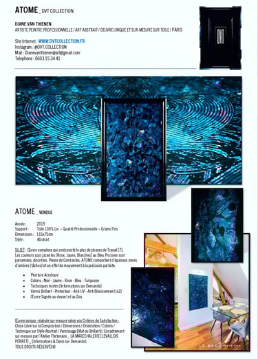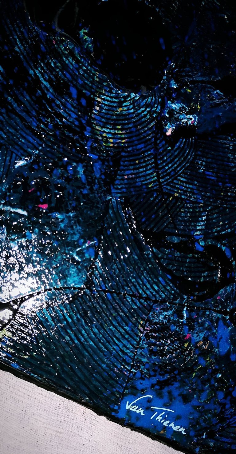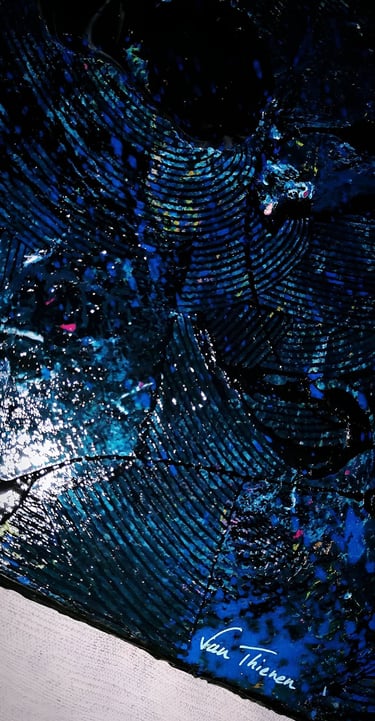 ▪︎ SUJET : Pièce Unique ; Sombre par sa base de Travail mais ayant des couleurs puissantes. Travail très fin au Couteau et Stylo Acrylique ; Les Mouvements qui la composent sont réalisées de manière très précises, sans défaut de tracé.