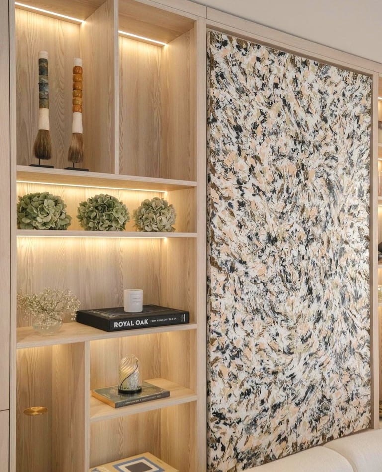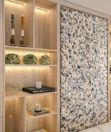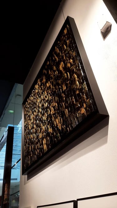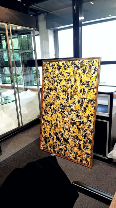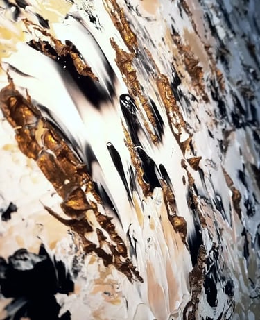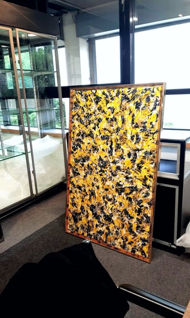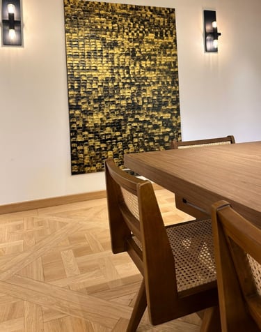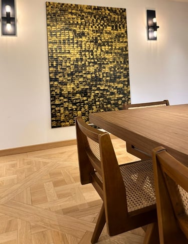L’oeuvre "GOLD XI" joue avec la lumière et la matière pour créer une surface vivante et vibrante. Les nuances dorées, travaillées en relief, captent le regard et évoluent selon les points de vue, offrant une expérience visuelle toujours changeante. Pensée comme une pièce architecturale, elle structure l’espace autant qu’elle l’habite, apportant caractère, profondeur et élégance à l’intérieur qui l’accueille.