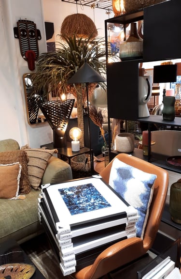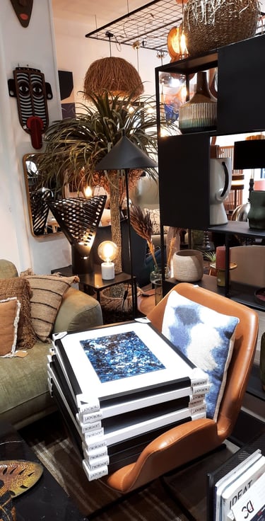 Cette collaboration avec Kabane Design s’inscrit dans une rencontre naturelle entre création artistique et univers décoratif.Mes œuvres dialoguent avec l’identité singulière de la boutique, mêlant matière, couleur et émotion, pour proposer des pièces fortes pensées comme des prolongements de l’espace.